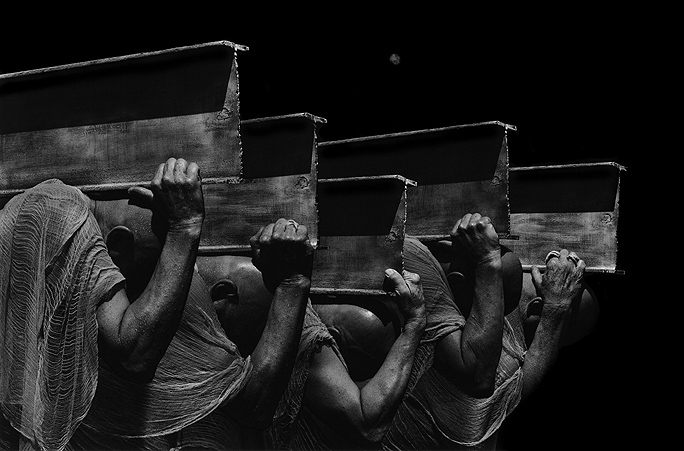 Todas mis imágenes son ensambladas en un cuarto oscuro tradicional en virtud de una extensión usando una técnica de enmascaramiento desarrollado y perfeccionado en los últimos años. Esta técnica tiene por supuesto sus limitaciones y me dirijo a ellas cuando se trabaja en ideas. Además, antes de imprimir el original, hago pruebas y ajustes para cada negativo que se va a imprimir. Yo escribo las tablas donde me indique la correcta exposición y todas las secuencias de manipulaciones para cada negativos utilizados. Luego viene la etapa de “secado” de impresión. Esta parte es la más implacable. Proyecto meticulosamente un negativo tras otro, cambiando constantemente preciso máscaras hasta el último negativo que utilizo. Es como regresar con seguridad a casa después de un largo, largo viaje en coche. Esta parte tiene que ver con la disciplina y tiene muy poco que ver con el arte. Después viene el momento de la “sentencia” cuando la primera impresión surge del desarrollador. Miro por posibles errores de la imagen en sí misma y siento una gran sensación de alivio cuando logro que la impresión sea “impecable”. Lamentablemente la técnica que yo estoy usando no tiene margen para errores. Se requiere una completa concentración y puede ser muy agotador física y mentalmente.